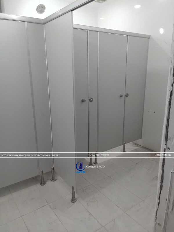 - Vách ngăn vệ sinh compact HPL : Đây là loại vật liệu được lựa chọn để thi công vách ngăn vệ sinh ở hầu hết các dự án lớn. Vật liệu này được tạo thành từ nhiều lớp giấy kraft đã nhúng qua với nhựa phenolic, chúng có khả năng chịu nước 100%, chịu được những tác động cơ học, dễ vệ sinh và làm sạch, tuổi thọ có thể kéo dài lên đến 20 năm.